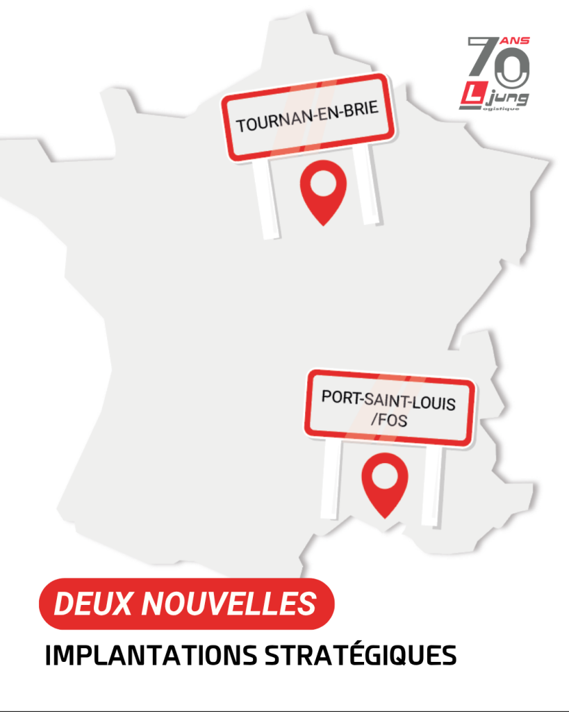 Deux nouveaux entrepôts pour Jung Logistique Chez Jung Logistique, notre développement se poursuit avec l’ouverture prochaine de deux nouveaux sites logistiques stratégiques en France. Situés à Tournan-en-Brie (Seine-et-Marne) et Port-Saint-Louis / Fos (Bouches-du-Rhône), ces entrepôts viendront renforcer nos capacités en transport, logistique et gestion des flux. Ces nouvelles implantations s’inscrivent dans une stratégie claire : nous rapprocher des grands axes logistiques, des territoires et des besoins de nos clients, tout en accompagnant l’évolution des volumes et des chaînes d’approvisionnement. Un entrepôt logistique de 28 800 m² à Tournan-en-Brie (77) Le premier projet concerne l’ouverture d’un entrepôt logistique à Tournan-en-Brie, en région parisienne. Développé en partenariat avec Argan, ce site disposera d’une surface de 28 800 m² et bénéficiera d’un embranchement ferroviaire, un atout stratégique pour la gestion des flux multimodaux. Cette implantation nous permettra de renforcer notre présence en Île-de-France, une zone clé pour les activités de distribution et de logistique. Ouverture prévue : décembre 2026 Un nouveau site logistique à Port-Saint-Louis / Fos (13) Le second projet concerne l’ouverture d’un entrepôt logistique de 16 700 m² à Port-Saint-Louis / Fos, dans le sud de la France. Situé à proximité du port de Fos-sur-Mer, ce site bénéficiera lui aussi d’un embranchement ferroviaire, facilitant les opérations de transport et la gestion des flux logistiques. Cette implantation nous permettra de renforcer notre présence dans le sud du territoire et d’accompagner le développement des activités liées aux flux portuaires, industriels et logistiques. Ouverture prévue : septembre 2026 Un développement stratégique pour la logistique et le transport Avec ces deux nouveaux sites, nous poursuivons le développement et l’optimisation de notre réseau logistique. Ces implantations nous permettront notamment de : renforcer nos capacités de stockage et de préparation de commandes, améliorer la gestion des flux logistiques, proposer des solutions logistiques adaptées aux besoins de nos clients, et accompagner le développement de nos activités de transport et de supply chain. Au-delà des infrastructures, ces projets représentent également de nouvelles opportunités pour nos équipes, les territoires et nos partenaires logistiques. Les préparatifs sont déjà en cours, et ces nouveaux sites marqueront une étape importante dans l’évolution du réseau logistique de Jung Logistique.